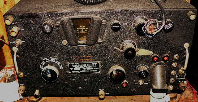 Looks lighweight but weighs a ton, a BC-342-N. This little receiver is a real surprise when you first try and lift it. Aside from being re-capped, it's pretty well original. Virtually no butchery took place on it aside from all "toilet seat" dust caps being removed from it. Tens of thousands WWII receivers and transmitter were bought surplus after the war and many owners attempted to de-militarize them. I guess they wanted to forget the war and make the rigs seem more "civilian" in nature. Not unusual at all.